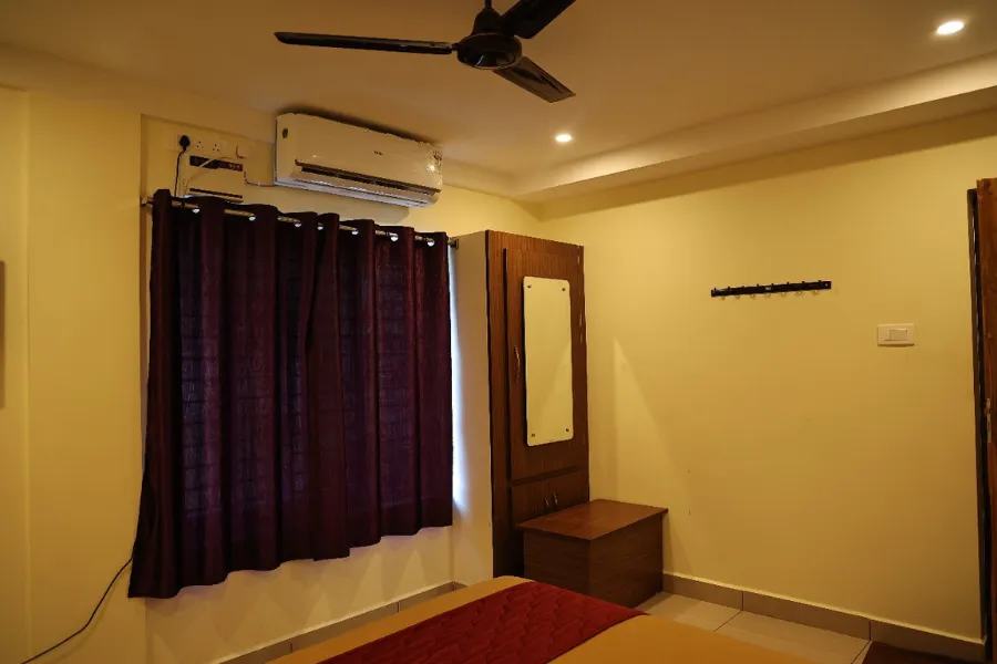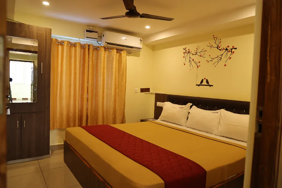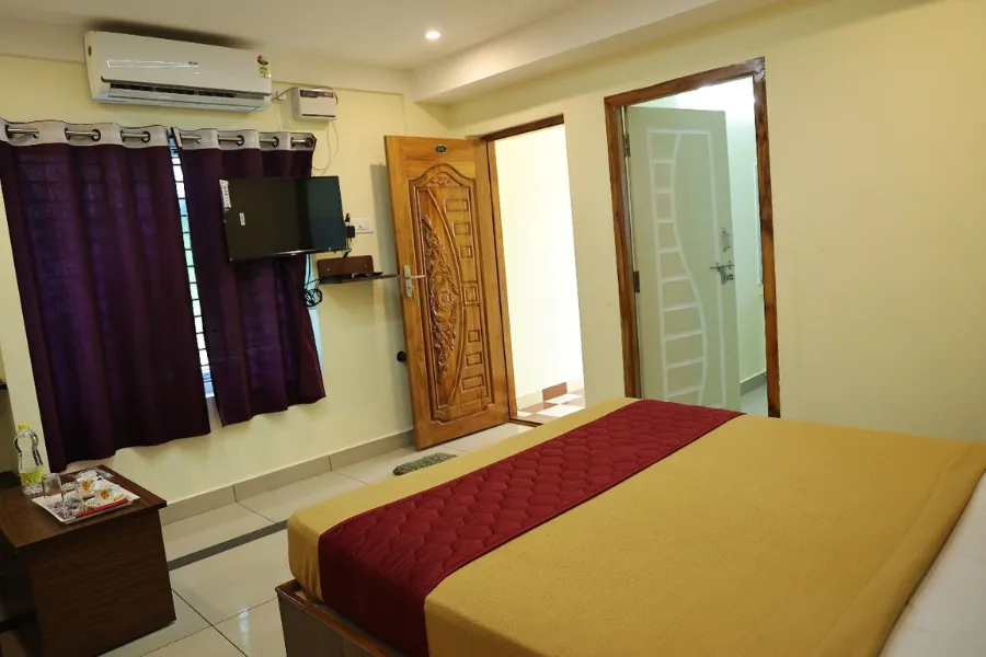 Designed for couples or small families, our Deluxe Room provides a cozy, stylish space with a plush double bed, air-conditioning, and modern amenities including high-speed Wi-Fi, a flat-screen TV, and 24×7 room service.